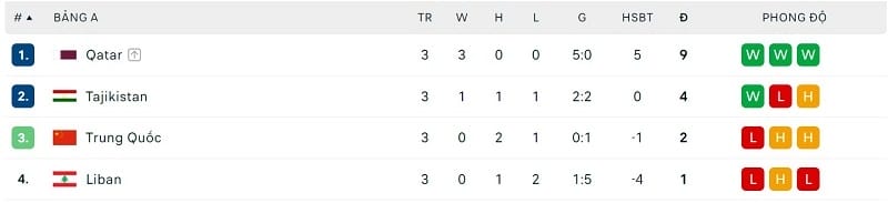 Bảng A: Qatar, Tajikistan
