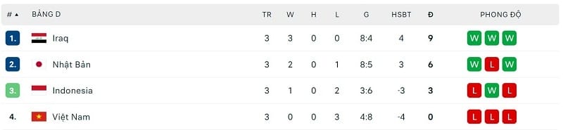 Bảng D: Iraq, Nhật Bản