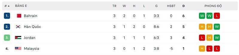 Bảng E: Bahrain, Hàn Quốc