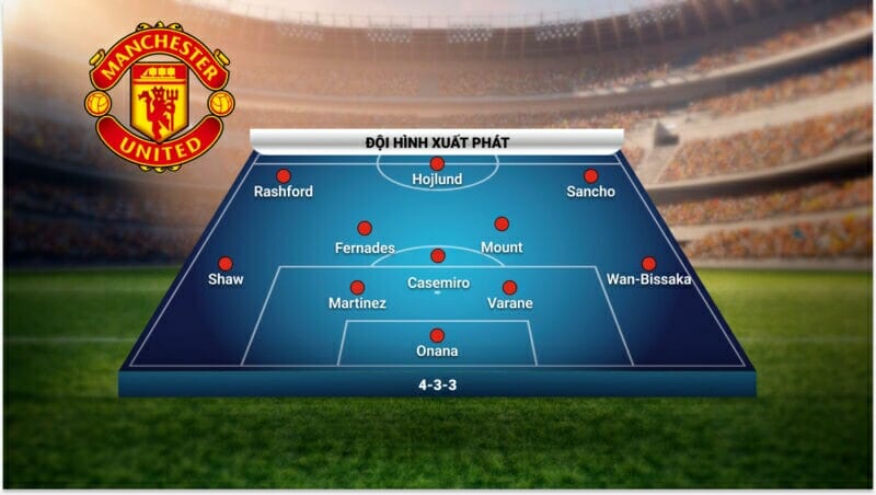 Casemiro và Mount có thể đá chính ở hàng tiền vệ với tân đội trưởng Bruno Fernandes hỗ trợ hàng công. Ten Hag đã chi 85 triệu bảng cho Antony vào năm ngoái và anh sẽ không dễ ngồi ghế dự bị.