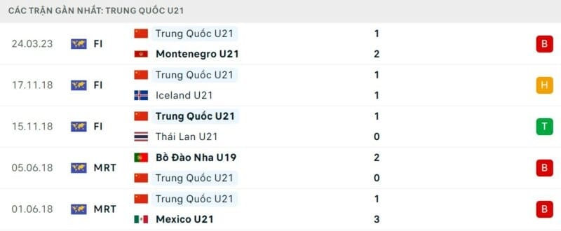 Phong độ U22 Trung Quốc vs U22 Việt Nam