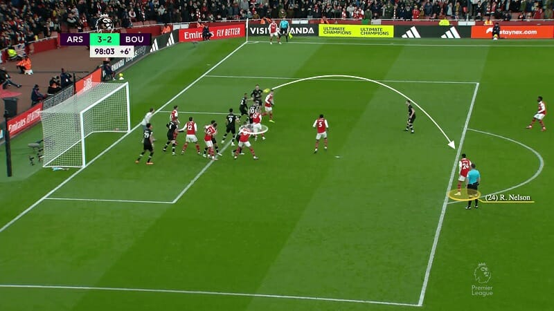 Tại Ngoại hạng Anh, Arsenal trở thành ví dụ điển hình cho việc tận dụng các cầu thủ bên ngoài để tấn công quả phạt góc. Không phải ngẫu nhiên mà 10/11 bàn thắng từ bóng “chết” của “Pháo thủ” là những tình huống khởi nguồn ở góc sân.