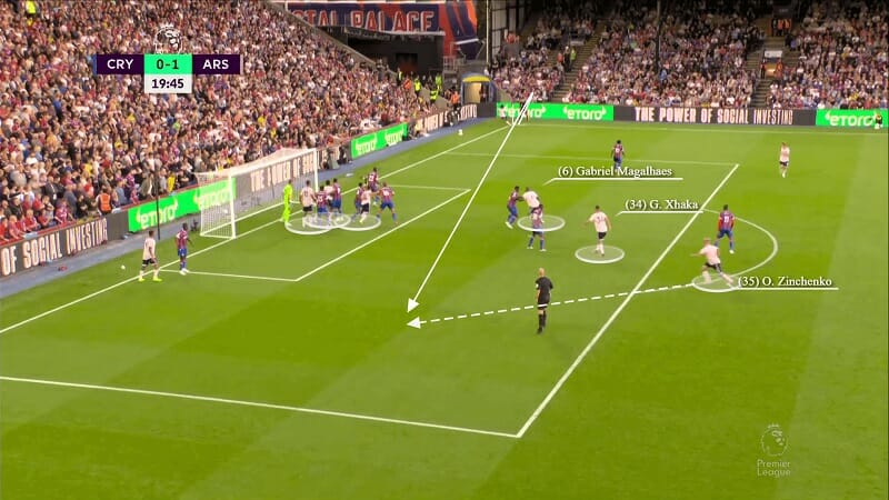 Phía Crystal Palace tỏ ra bối rối khi nhìn tới Zinchenko, và họ bỏ rơi Martinelli – người đánh đầu nối thành bàn.