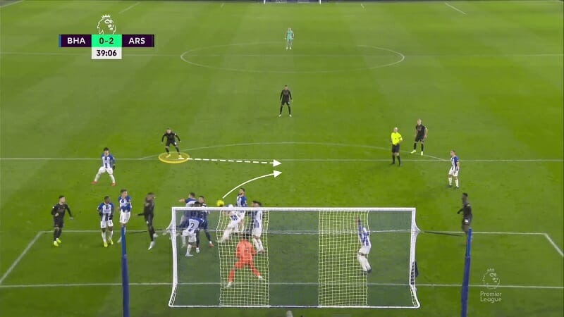 Không chỉ bóng một mà các cầu thủ đón lõng bên ngoài của Arsenal cũng khai thác tốt các pha bóng hai. Trước Brighton & Hove Albion, thủ quân Odegaard lao vào vô-lê từ quả phá bóng của đối phương, nâng tỷ số lên thành 2-0.