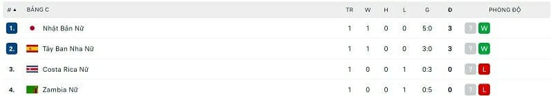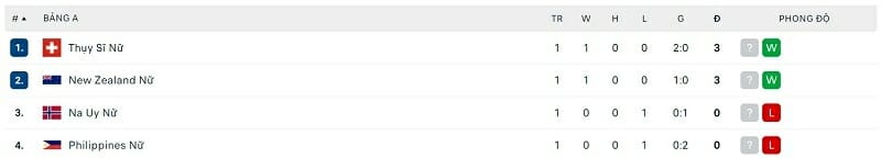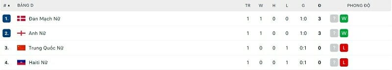 One Goal News cung cấp bảng xếp hạng World Cup bóng đá nữ hôm nay ngày 24/07. Bất ngờ đã xảy ra ở bảng F khi ứng viên vô địch là Pháp chỉ có được kết quả hòa trước Jamaica.