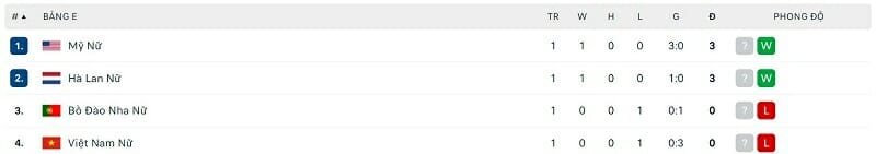 Với chất lượng nhân sự vượt trội, ĐT nữ Mỹ và Hà Lan dĩ nhiên là những tập thể được đánh giá cao nhất bảng E. Trong khi các nhà đương kim vô địch ra quân thuận lợi bằng chiến thắng 3-0 trước ĐT nữ Việt Nam thì Oranje cũng có 3 điểm trọn vẹn khi chạm trán Bồ Đào Nha. Dù chỉ có được chiến thắng với tỷ số tối thiểu 1-0 nhưng ĐT nữ Hà Lan đã làm chủ hoàn toàn thế trận và thể hiện sức mạnh áp đảo trước đối thủ.