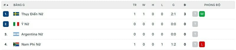 Tại bảng G, một trong những ứng viên cho chức vô địch là ĐT nữ Thụy Điển đã có ngày ra quân vô cùng nhọc nhằn trước Nam Phi. Những tưởng việc chỉ phải gặp một đội bóng xếp thứ 54 trên bảng xếp hạng FIFA sẽ là cơ hội tuyệt vời để đoàn quân của HLV Peter Gerhardsson dễ dàng giành chiến thắng, thậm chí là thắng với tỷ số đậm thì mọi chuyện lại diễn ra hoàn toàn trái ngược.