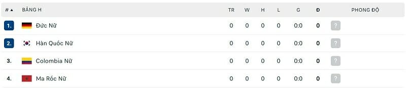 Bảng H là bảng đấu có ngày ra quân muộn nhất tại VCK World Cup nữ 2023. Ở trận đấu đầu tiên, ĐT nữ Đức gặp Ma Rốc vào lúc 15h30 ngày 24/07. Trong khi Đức hiện xếp thứ 2 trên bảng xếp hạng FIFA và là một trong những ứng viên hàng đầu cho chức vô địch thì Ma Rốc lại chỉ có được vị trí thứ 72 trên bảng xếp hạng. Thậm chí đoàn quân của HLV Reynald Pedros còn xếp sau ĐT nữ Việt Nam đến 40 bậc và dĩ nhiên, họ bị đánh giá là đội “lót đường” tại bảng H. Nếu thi đấu đúng sức, chiến thắng và xa hơn là thắng đậm không phải mục tiêu quá khó đối với Die Nationalelf.
