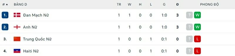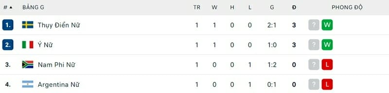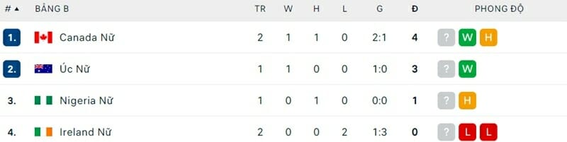 Trong khi đó, ĐT nữ Ireland chính thức chia tay giải đấu vì chưa có điểm nào sau 2 trận.