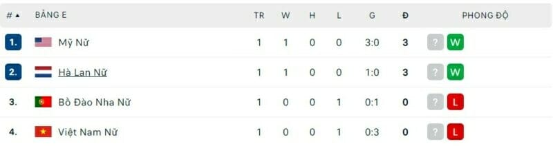 One Goal News cung cấp bảng xếp hạng World Cup bóng đá nữ hôm nay ngày 27/07. Tại bảng E sẽ diễn ra cả 2 trận của lượt thi đấu 2 và những tấm vé đi tiếp đầu tiên có thể sẽ lộ diện ngay trong hôm nay.