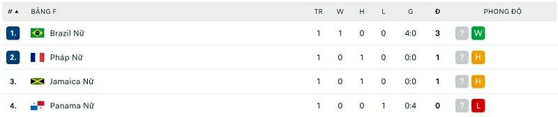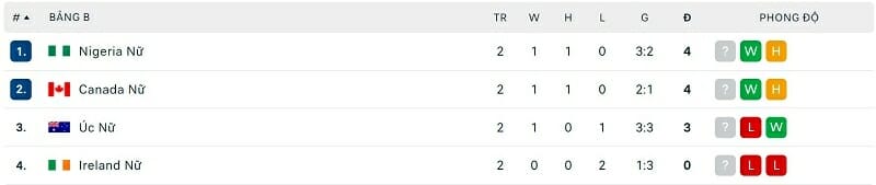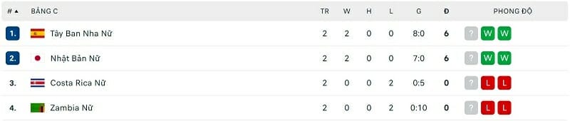 One Goal News cung cấp bảng xếp hạng World Cup bóng đá nữ hôm nay ngày 29/07. Chiến thắng trước Đan Mạch đã giúp ĐT nữ Anh sớm giành vé vượt qua vòng bảng.