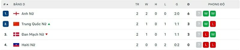 Với những kết quả trên, ĐT nữ Haiti đã chính thức bị loại sau hai lượt trận toàn thua. Bên cạnh ĐT nữ Anh, cơ hội đi tiếp đang được chia đều cho Đan Mạch và Trung Quốc.
