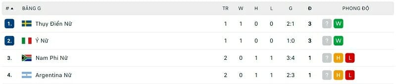 Bảng G đang là một trong những bảng đấu thú vị nhất World Cup nữ năm nay. Tính đến thời điểm hiện tại, đội tuyển nào cũng đã có ít nhất 1 điểm. Ở trận đấu diễn ra lúc 07h00 ngày 28/07 vừa qua, ĐT nữ Argentina và Nam Phi đã cống hiến cho người hâm mộ một trận cầu mãn nhãn với tổng cộng 4 bàn thắng được ghi, chia đều cho cả hai đội.