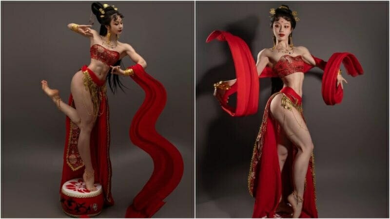Hồi đầu năm nay, cô đã khoác lên mình bộ đồ cổ trang khiến dân mạng ngỡ ngàng, tự hỏi vì sao một người có gương mặt như vậy lại có thân hình lực lưỡng thế kia. Khi dịp trung thu về, người ta lại ‘đào’ lên bộ ảnh này của cô và gọi vui là ‘Chị Hằng lực lưỡng’.