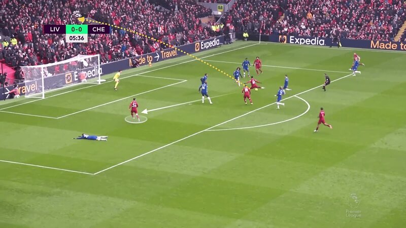 Cũng tại màn thư hùng với Chelsea, ngay đầu trận, Gakpo đón bóng từ đường nhả về của Mohamed Salah.