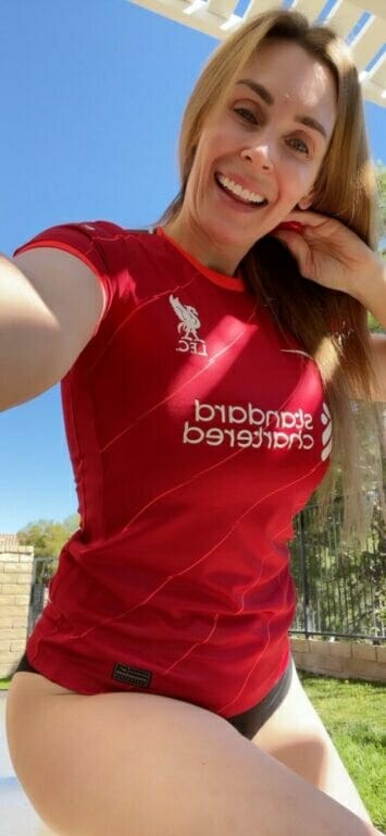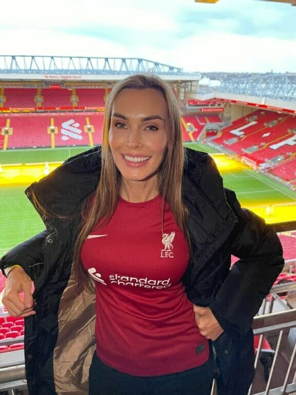 Vì sinh ra tại Liverpool nên không có gì ngạc nhiên khi cô là một fan lớn của đội bóng này. Không ít lần người đẹp đã khoác lên mình bộ áo đấu để thể hiện sự ủng hộ CLB: