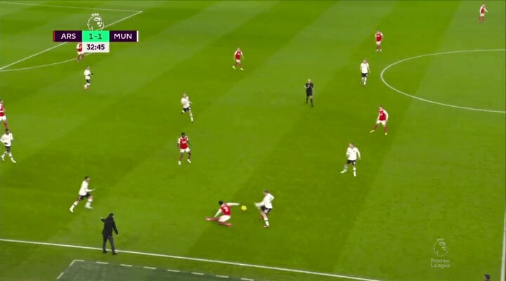 Mặc dù số 7 của Arsenal kiếm về quả phạt, nhưng MU mới là bên đạt được mục đích: họ ngăn chặn một pha tấn công và có thời gian tái điều chỉnh cấu trúc phòng ngự.