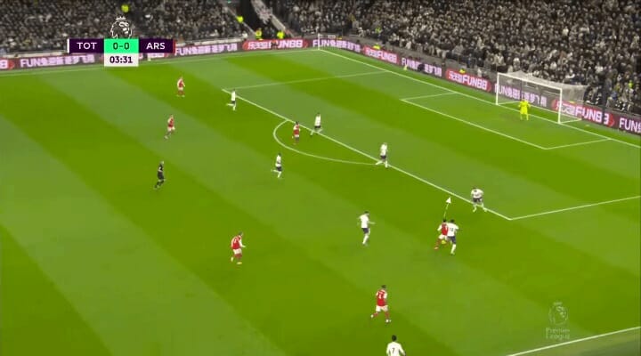 Hay trong pha bóng dưới đây, tập thể áo đỏ có quân số ngang với Tottenham Hotspur (2v2) nơi biên phải.