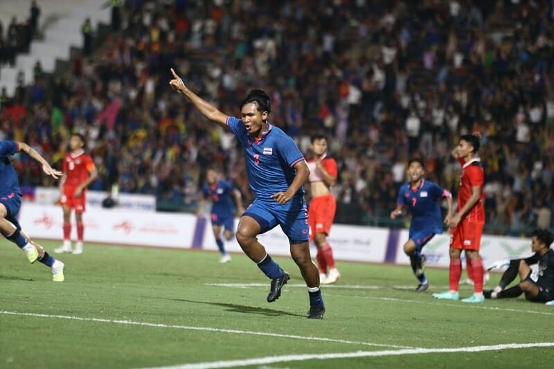 Ở phút 21, U22 Indonesia đã có được điều mình cần. Từ cú ném biên thẳng vào vòng cấm của Dewangga, Sananta chọn vị trí thông minh và tung ra cú đánh đầu khiến thủ thành Soponwi không thể cản phá. Đến phút bù giờ thứ 4, tận dụng tình huống lên quá cao của Soponwit, Sananta đã tâng bóng đầy nhạy cảm qua đầu thủ thành bên phía U22 Thái Lan và nâng tỷ số lên 2-0.