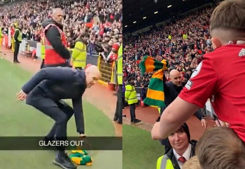 Sau chiến thắng trước Aston Villa, HLV Erik ten Hag đã bất ngờ nhặt một chiếc khăn có ý nghĩa phản đối nhà Glazer lên rồi vẫy chào người hâm mộ.