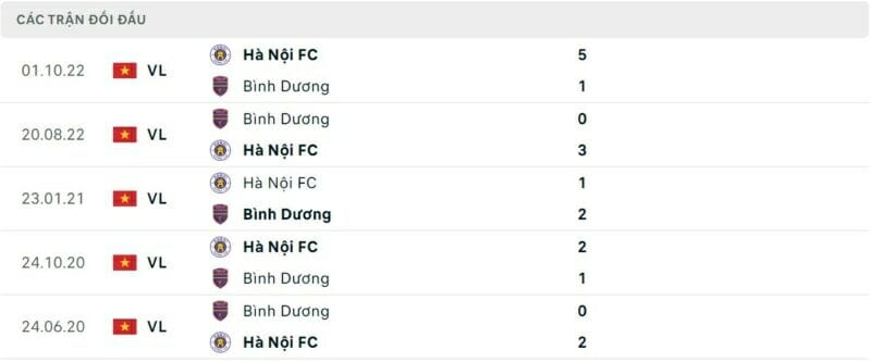 Thành tích đối đầu Bình Dương vs Hà Nội