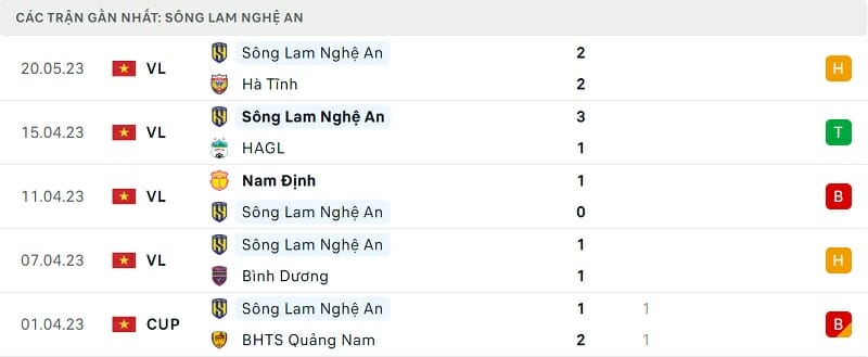Phong độ Công An Hà Nội vs Sông Lam Nghệ An