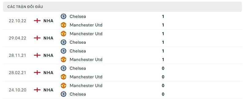 Thành tích đối đầu Man United vs Chelsea: