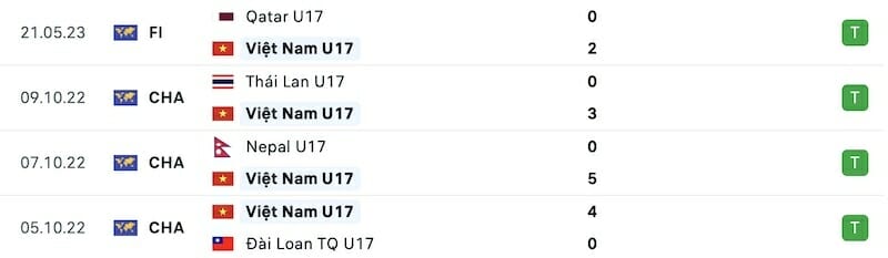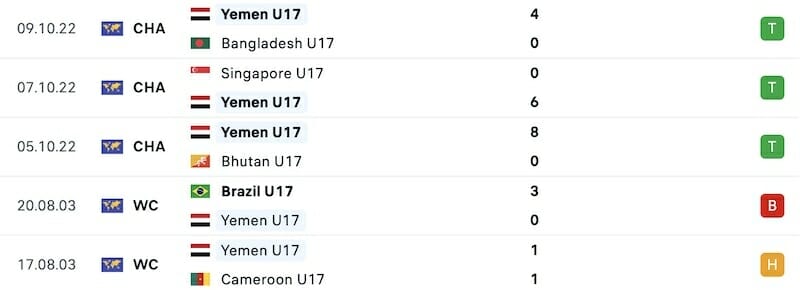 Thành tích đối đầu U17 Việt Nam vs U17 Yemen