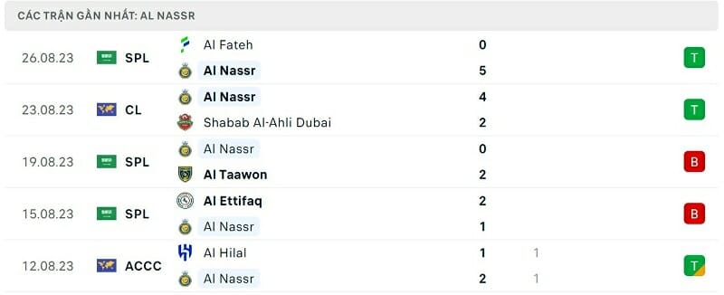 Sau khởi đầu tệ hại tại Saudi Pro League mùa này với hai thất bại, Al Nassr đang dần cho thấy sự ổn định. Cristiano Ronaldo cùng các đồng đội có màn lội ngược dòng thần kỳ trước Shabab Al-Ahli để kết thúc trận đấu với tỷ số 4-2, qua đó giành vé tham dự vòng bảng AFC Champions League. Ở trận đấu gần nhất gặp Al Fateh, Al Nassr đã thể hiện sức mạnh vượt trội khi giành chiến thắng với tỷ số 5-0.