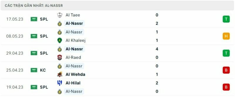 Phong độ Al Nassr vs Al Shabab