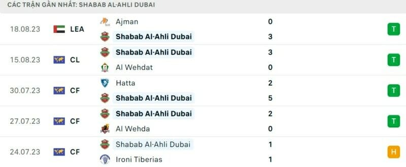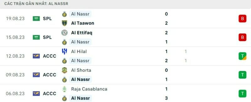 Phong độ gần đây Al Nassr vs Shabab Al-Ahli Dubai: