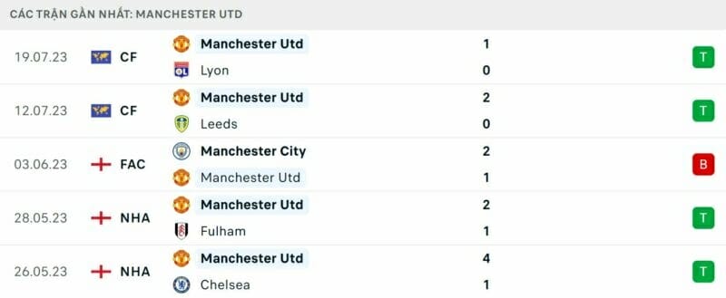 Đối thủ của họ là MU lần lượt thắng Leeds United và Lyon với các tỷ số lần lượt là 2-0 rồi 1-0. Dù không còn David de Gea trong đội hình nhưng Quỷ đỏ vẫn đang tạm làm tốt việc giữ sạch lưới. Bản hợp đồng mới Andre Onana sẽ có cơ hội ra sân ở trận giao hữu chất lượng này. Mason Mount cũng được mong đợi sẽ để lại dấu ấn rõ nét hơn.
