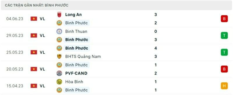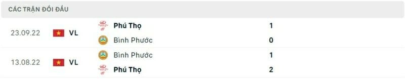 Thành tích đối đầu Bình Phước vs Phú Thọ