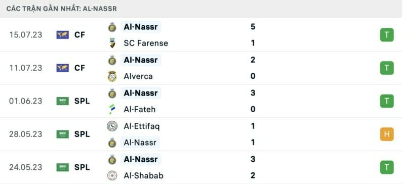 Al Nassr đã có thắng lợi tưng bừng 5-1 trong trận giao hữu gần nhất trước SC Farense. Đội bóng mới thăng lên chơi ở hạng đấu cao nhất Bồ Đào Nha không phải là đối thủ của đại gia Ả Rập Xê Út, mặc dù Cristiano Ronaldo không ra sân thi đấu đi nữa.