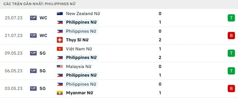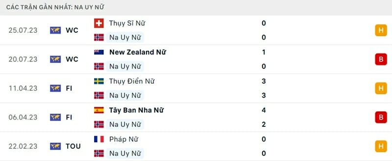 Phong độ ĐT nữ Na Uy vs ĐT nữ Philippines: