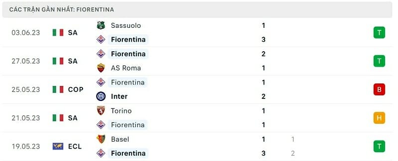 Phong độ Fiorentina vs West Ham: