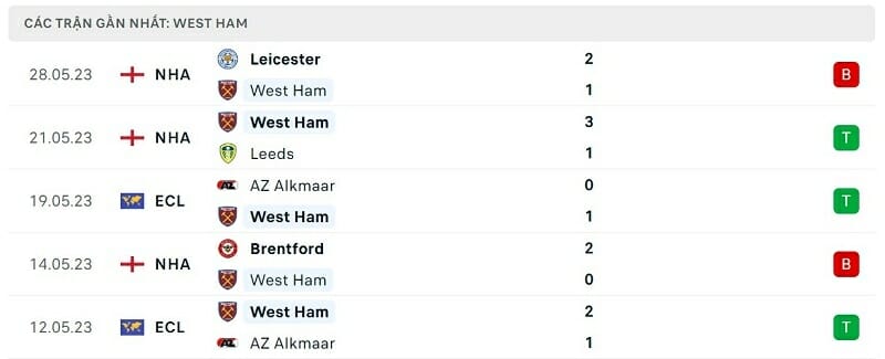 Phía bên kia chiến tuyến, phong độ của West Ham không tốt như Fiorentina nhưng cũng ở mức không quá tệ. Đoàn quân của HLV David Moyes có 3 chiến thắng và 2 thất bại trong 5 trận gần nhất. Việc phải nhận 2 thất bại tại Ngoại hạng Anh không phải điều gì quá đáng lo với West Ham bởi họ đã sớm trụ hạng thành công.