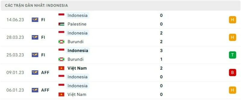 Đội chủ nhà ở trận đấu tới không có được sự chuẩn bị quá tốt kể từ sau thất bại trước Việt Nam tại AFF Cup 2022. Thầy trò HLV Shin Tae-yong thi đấu 3 trận giao hữu, có thành tích thắng 1 và hòa 2. Trong cuộc đối đầu gần nhất gặp Palestine trên sân nhà, Indonesia gây thất vọng khi áp đảo thế trận hoàn toàn nhưng chỉ có thể hòa không bàn thắng.