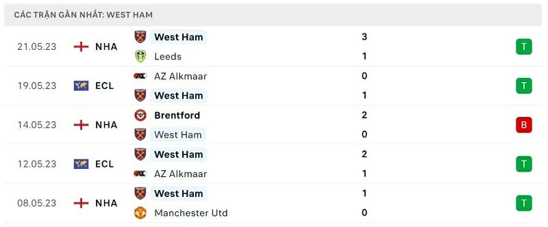 Trái ngược hoàn toàn với Leicester, West Ham lại đang có được tinh thần rất tốt nhờ hai chiến thắng liên tiếp trước AZ Alkmaar và Leeds. Sau khởi đầu tương đối thất vọng ở nửa đầu mùa giải, đoàn quân của HLV David Moyes dần tìm lại được sự ổn định và cũng vừa giành được 2 chiến thắng trong 3 vòng đấu gần nhất tại Ngoại hạng Anh.