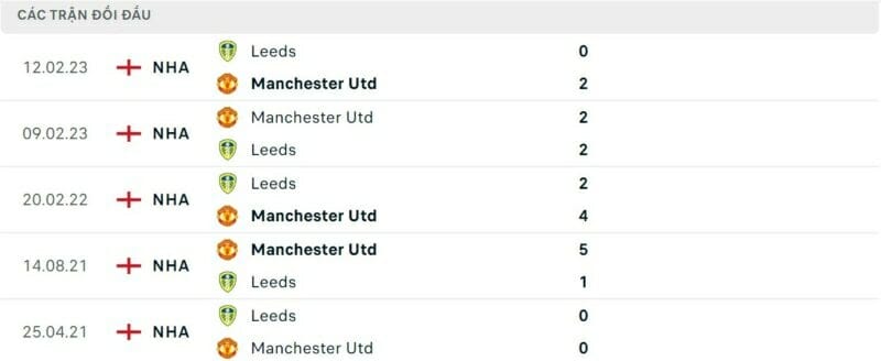 Thành tích đối đầu Man United vs Leeds:
