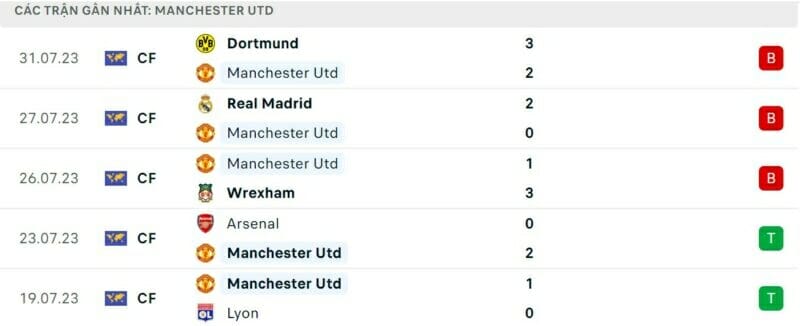 Phong độ gần đây Man United vs Athletic Bilbao: