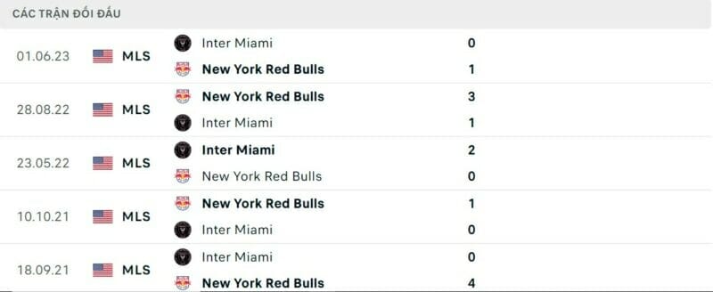 Thành tích đối đầu New York Red Bulls vs Inter Miami: