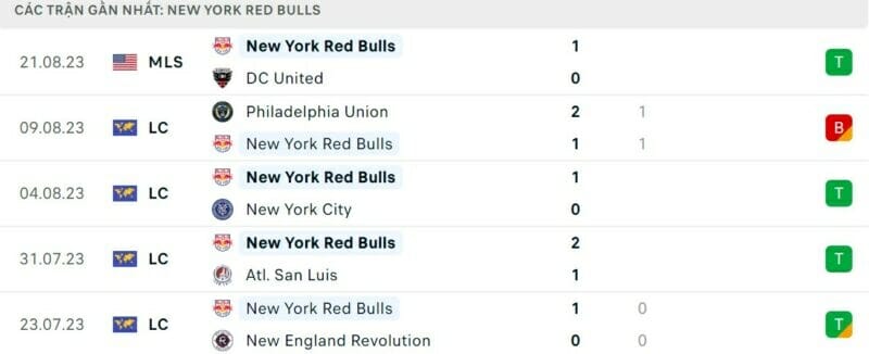 Phong độ gần đây New York Red Bulls vs Inter Miami: