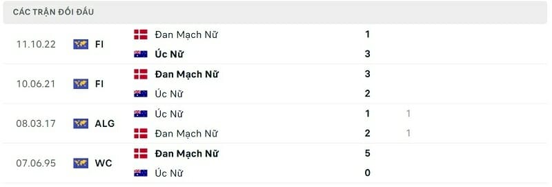 Thành tích đối đầu nữ Australia vs nữ Đan Mạch:
