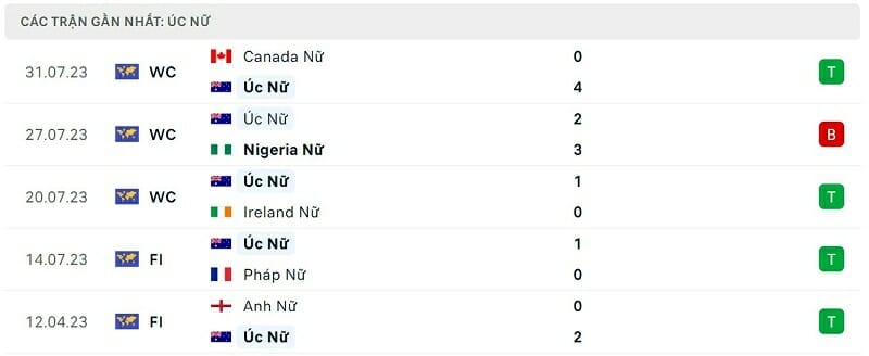 Cụ thể, ĐT nữ Australia ra quân thuận lợi bằng chiến thắng 1-0 trước Ireland. Sau đó, nếu may mắn hơn, họ đã có thể giành được ít nhất 1 điểm trước hiện tượng Nigeria thay vì thất bại 2-3. Ở trận đấu gần nhất và cũng là lượt trận cuối của vòng bảng, ĐT nữ Australia đã “hủy diệt” Canada với tỷ số đậm 4-0. Những kết quả trên giúp đoàn quân của HLV Tony Gustafsson giành được tổng cộng 6 điểm và tiến vào vòng knock-out với tư cách nhất bảng B.