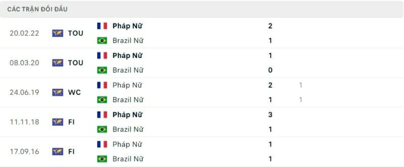 Thông tin lực lượng nữ Pháp vs nữ Brazil