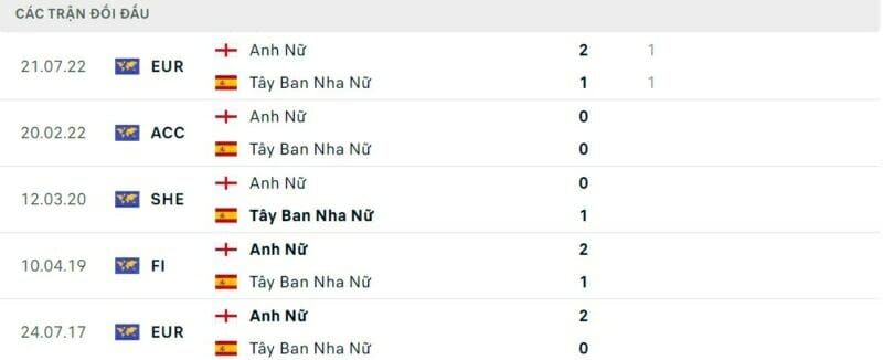 Thành tích đối đầu nữ Tây Ban Nha vs nữ Anh: