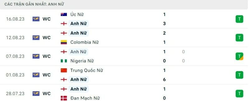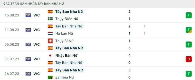 Phong độ gần đây nữ Tây Ban Nha vs nữ Anh: