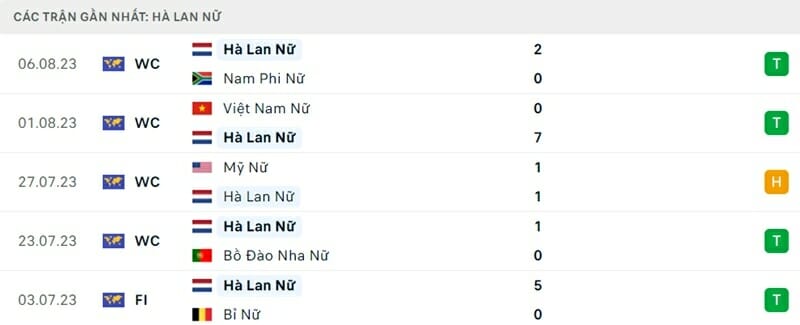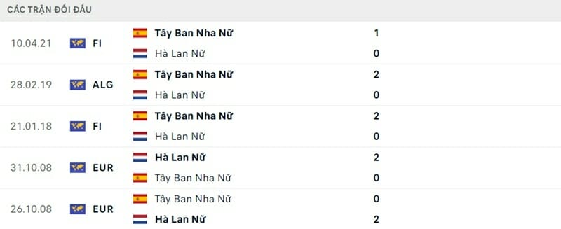 Thành tích đối đầu nữ Tây Ban Nha vs nữ Hà Lan: