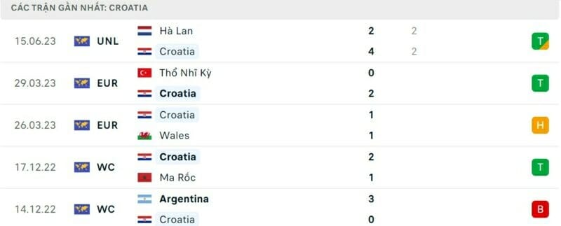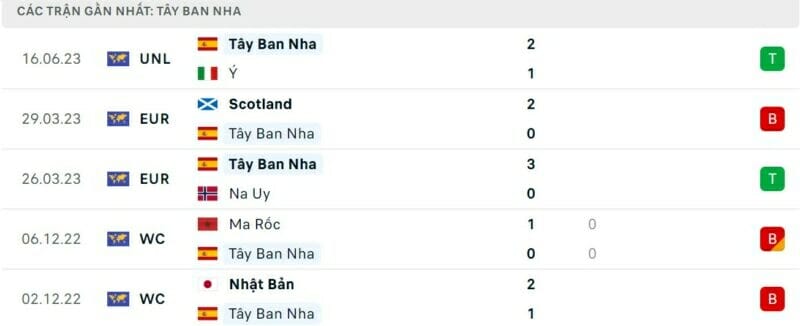 Phong độ gần đây Tây Ban Nha vs Croatia: